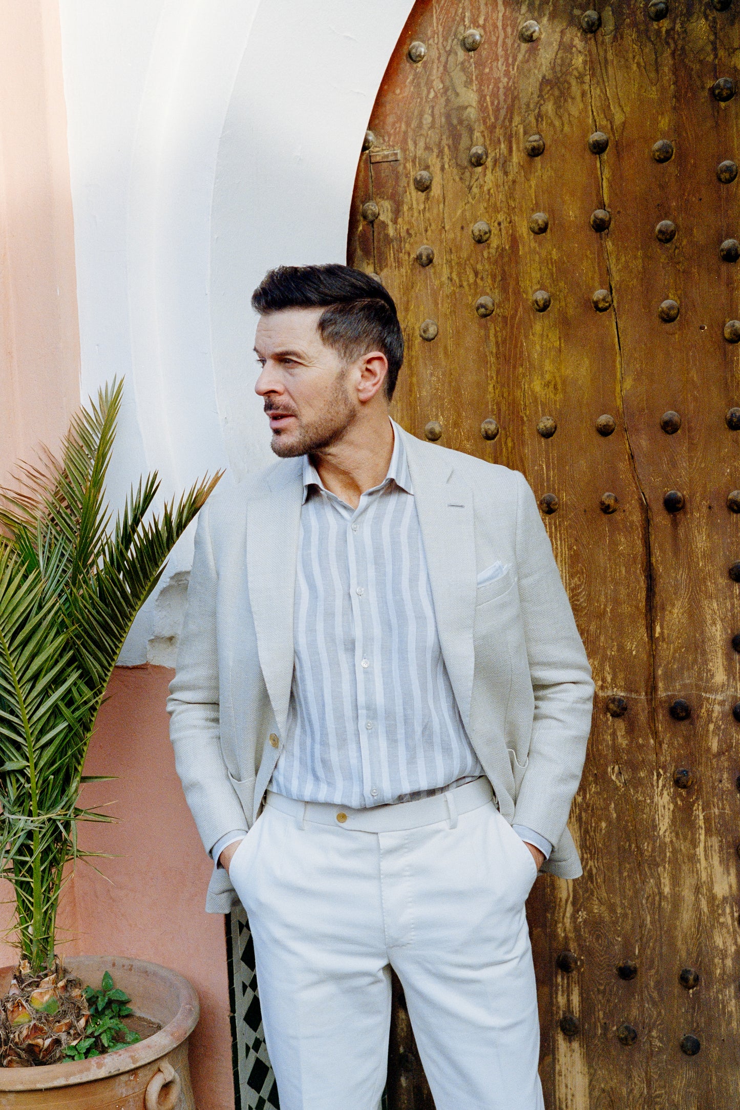 The soft pallet of dusty blues, rich creams and tobaccos provided the inspiration for a series of summer garments, designed to evoke the energy of this city. A once colourful place, sun bleached and softened, now the walls provide the perfect pairing to the sky, soft pinks mixing with rich blues creating a palette of summer tones, equally suited to linen, wools and silk.